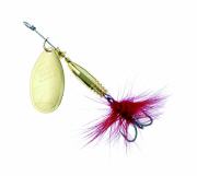 Topp Spinner für Barsch, Forelle und Döbel. Mit nadelscharfen Mustad Haken. Dank Sprengring kann der Drilling einfach z.B. gegen einen Einzelhaken getauscht werden.